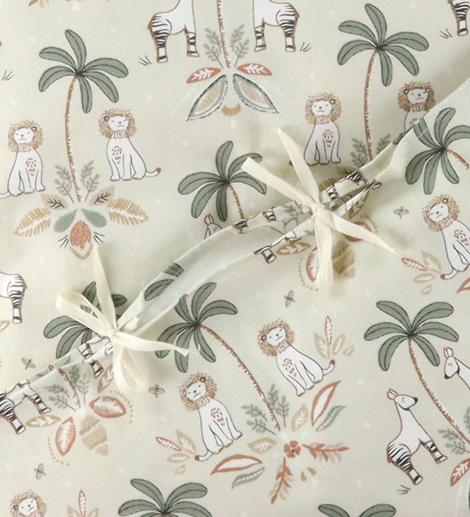 Forestil dig dit barn svævende ind i drømmeland omgivet af legesyge palmer, majestætiske løver og strålende zebraer. Dette sengetøj bringer naturen ind i soveværelset og pryder dyner og puder med en livlig og farverig illustration, der fanger børns fantasi. Den bløde, økologiske bomuldsfiber betyder, at dit barn ikke blot sover godt, men også med god samvittighed, da produktet er skabt med omtanke for miljøet. Hver fiber er silkeblød mod huden, og det naturlige materiale sikrer en behagelig temperatur, så dit barn hverken bliver for varmt eller koldt om natten.